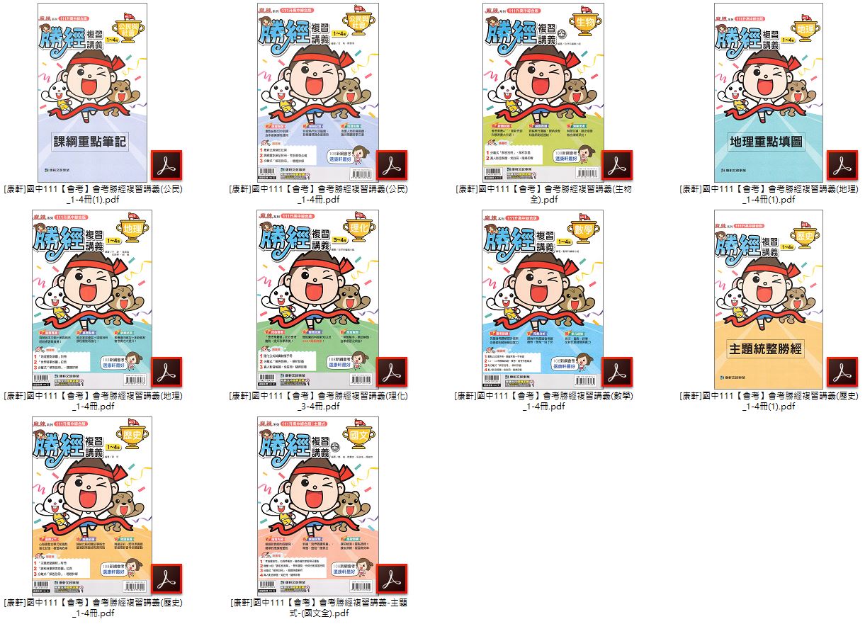 • 110年國中會考 康軒 會考勝經 總複習講義 全科目 講義光碟