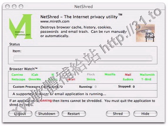 • Mireth NetShred X v4.7.1 MacOSX 英文正式版(刪除瀏覽器的cache和歷史記錄以及無用的email資訊軟體)