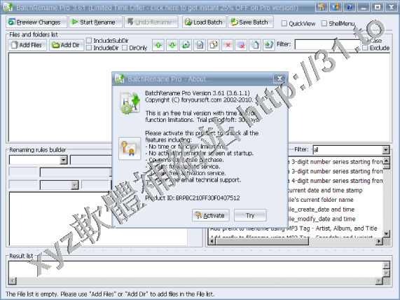 Foryoursoft BatchRename Pro v3.61 英文正式版(文件名和擴展名的批量重命名軟體)